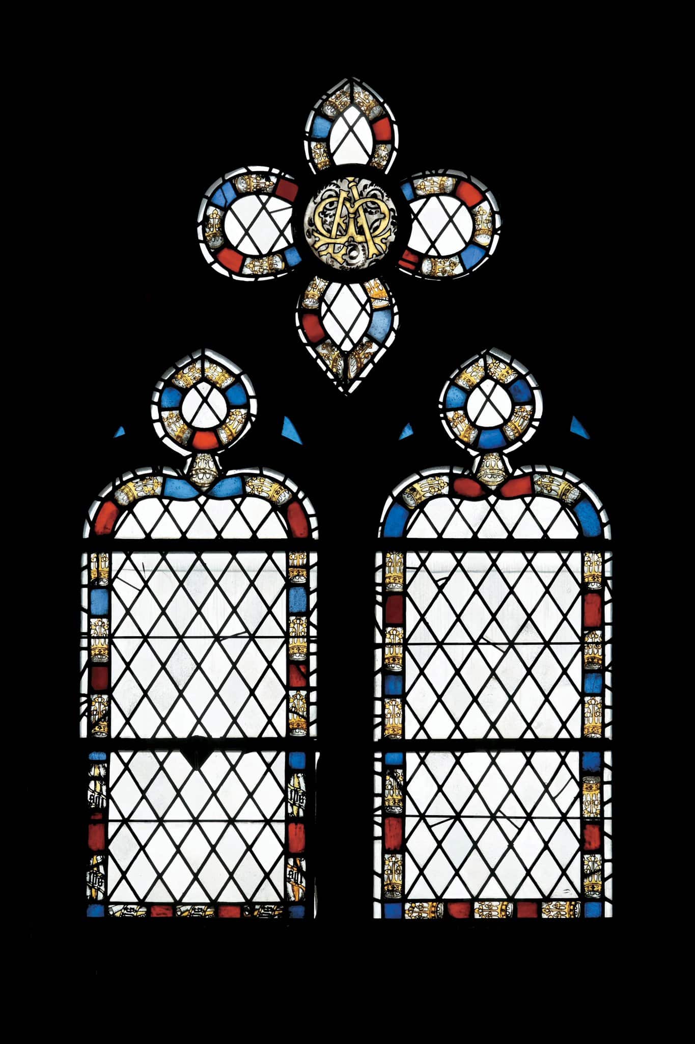 L’attribution de ce vitrail ornemental à l’atelier Kirsch & Fleckner n’est pas certaine.