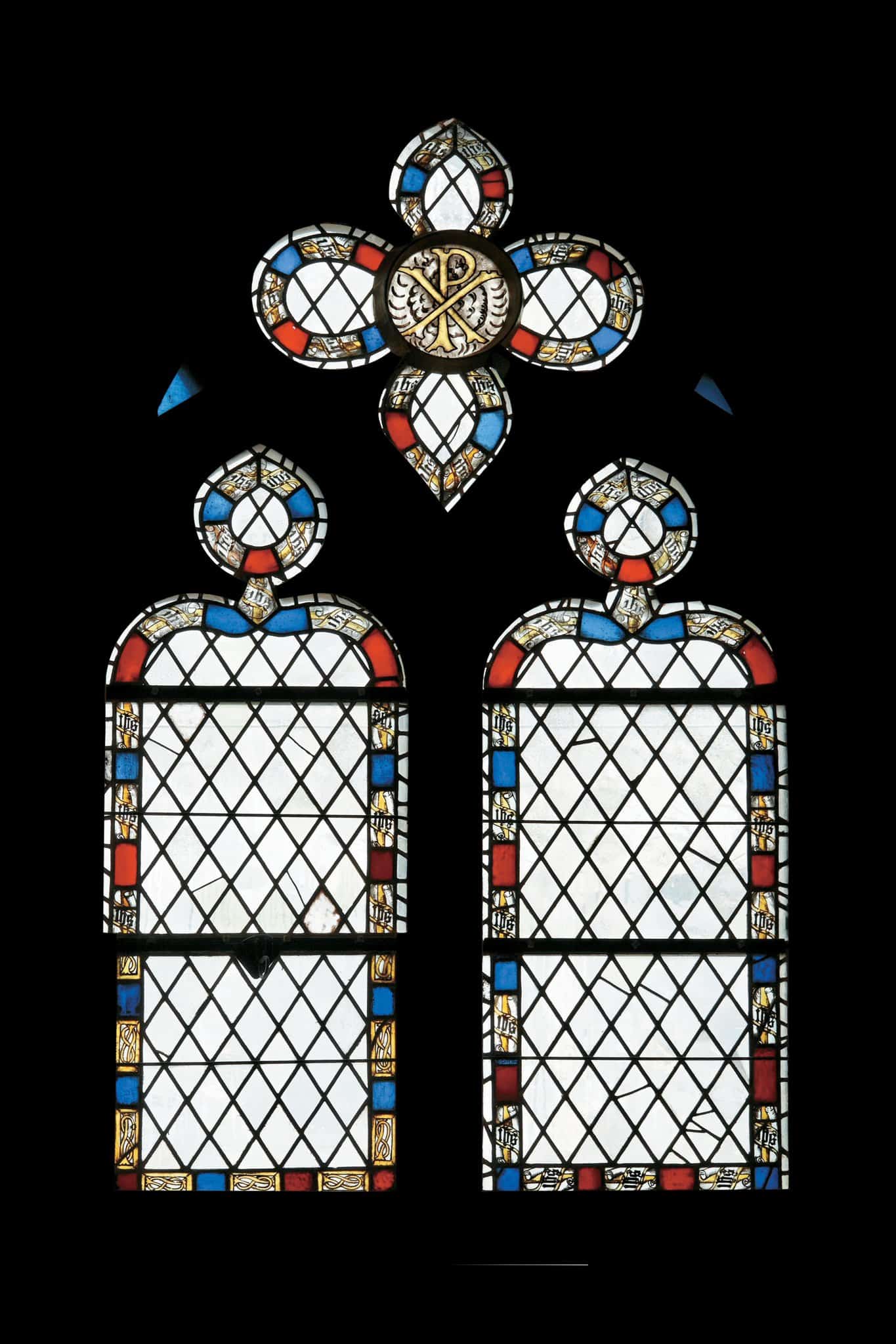 L’attribution de ce vitrail ornemental à l’atelier Kirsch & Fleckner n’est pas certaine.