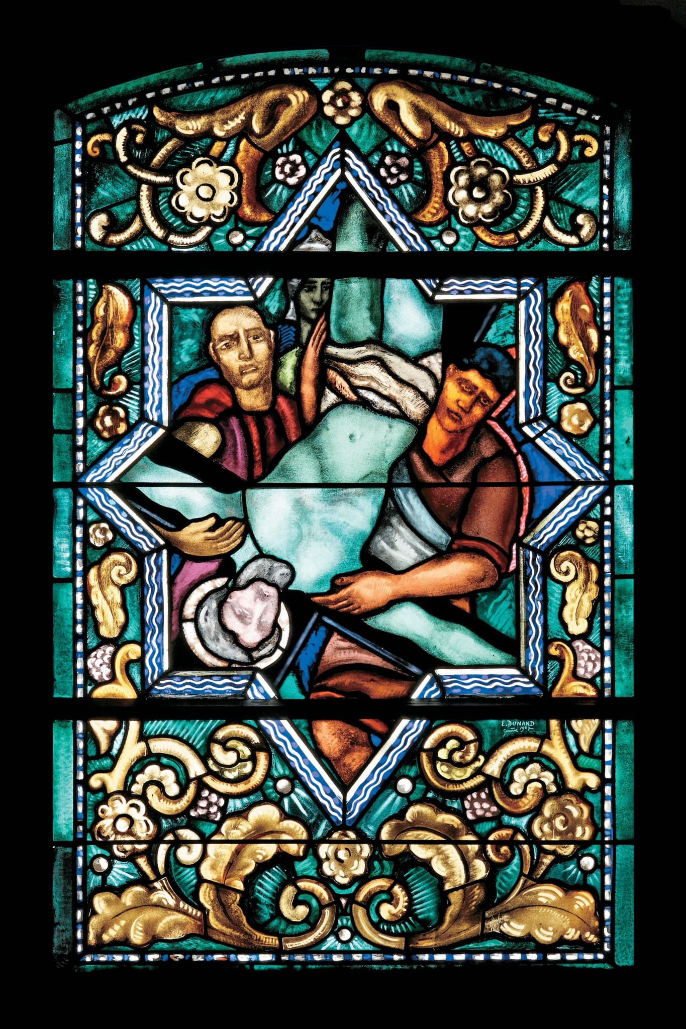 Vitrail au plomb, grisaille