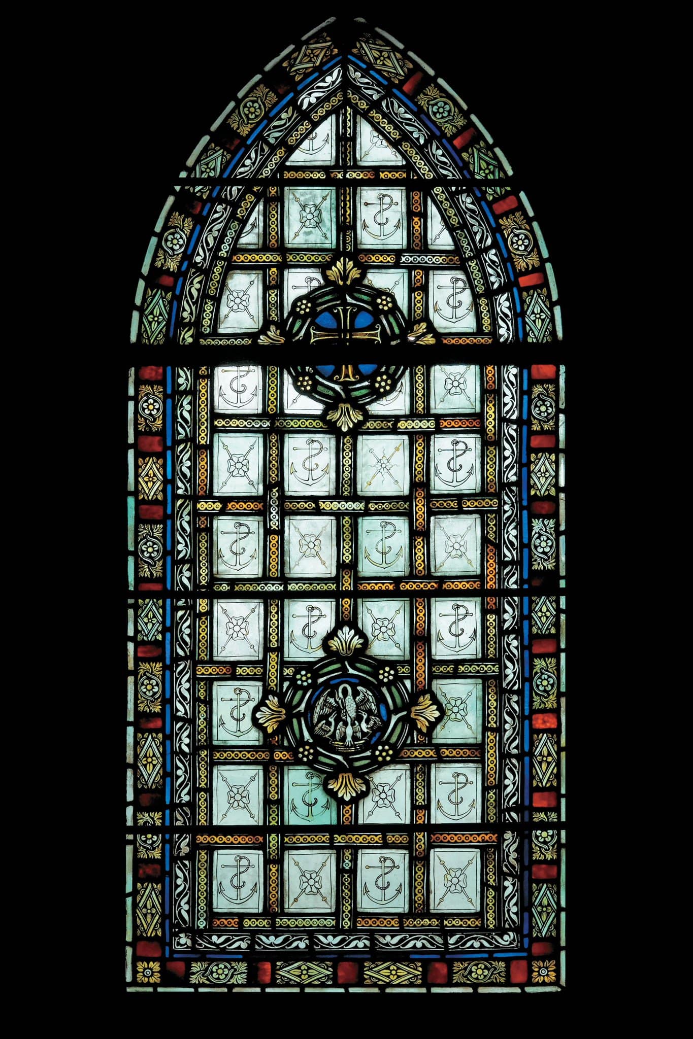 Motifs ornementaux avec une croix et un pélican dans des médaillons