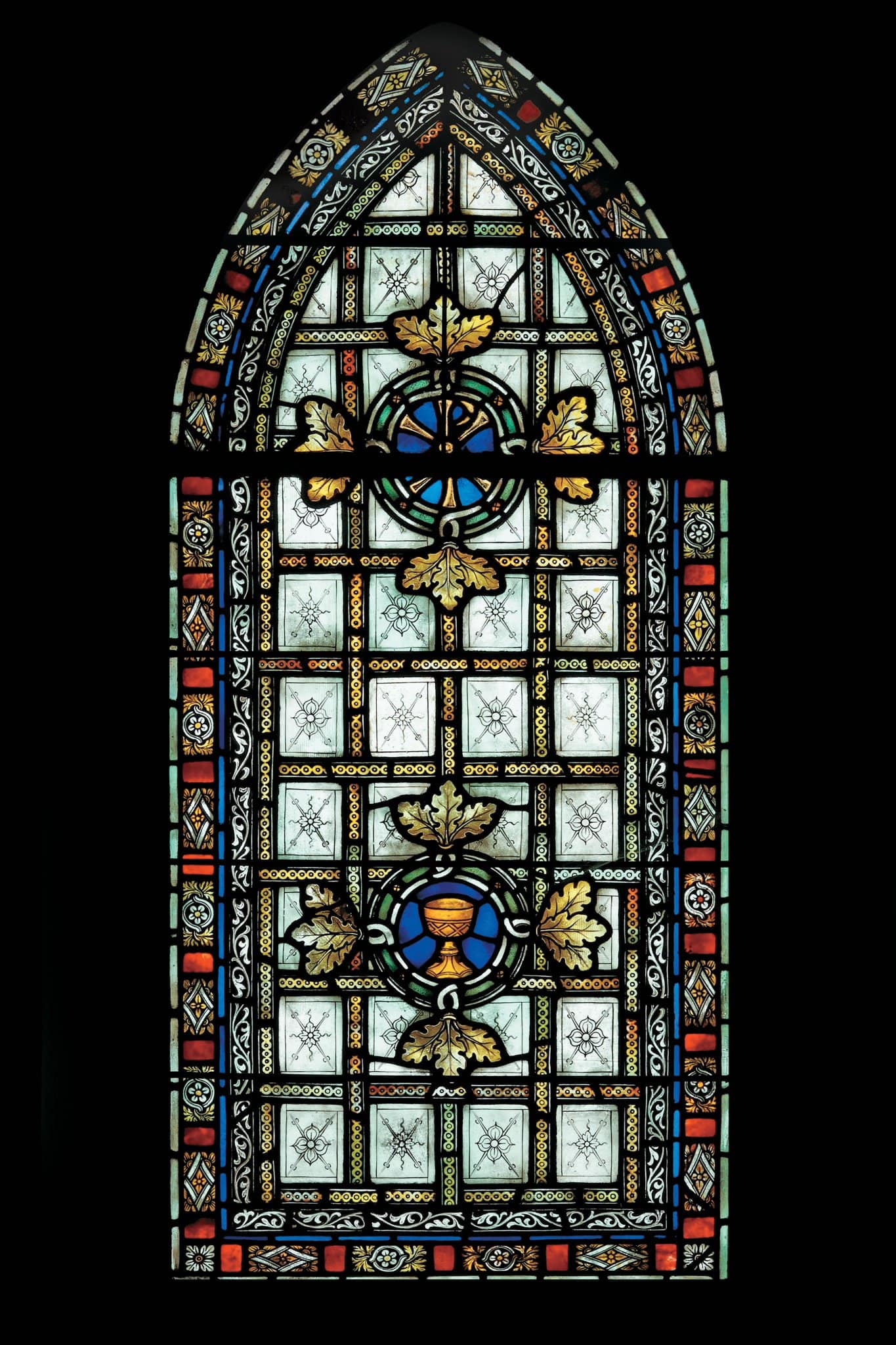 Motifs ornementaux avec le chrisme et le calice dans des médaillons