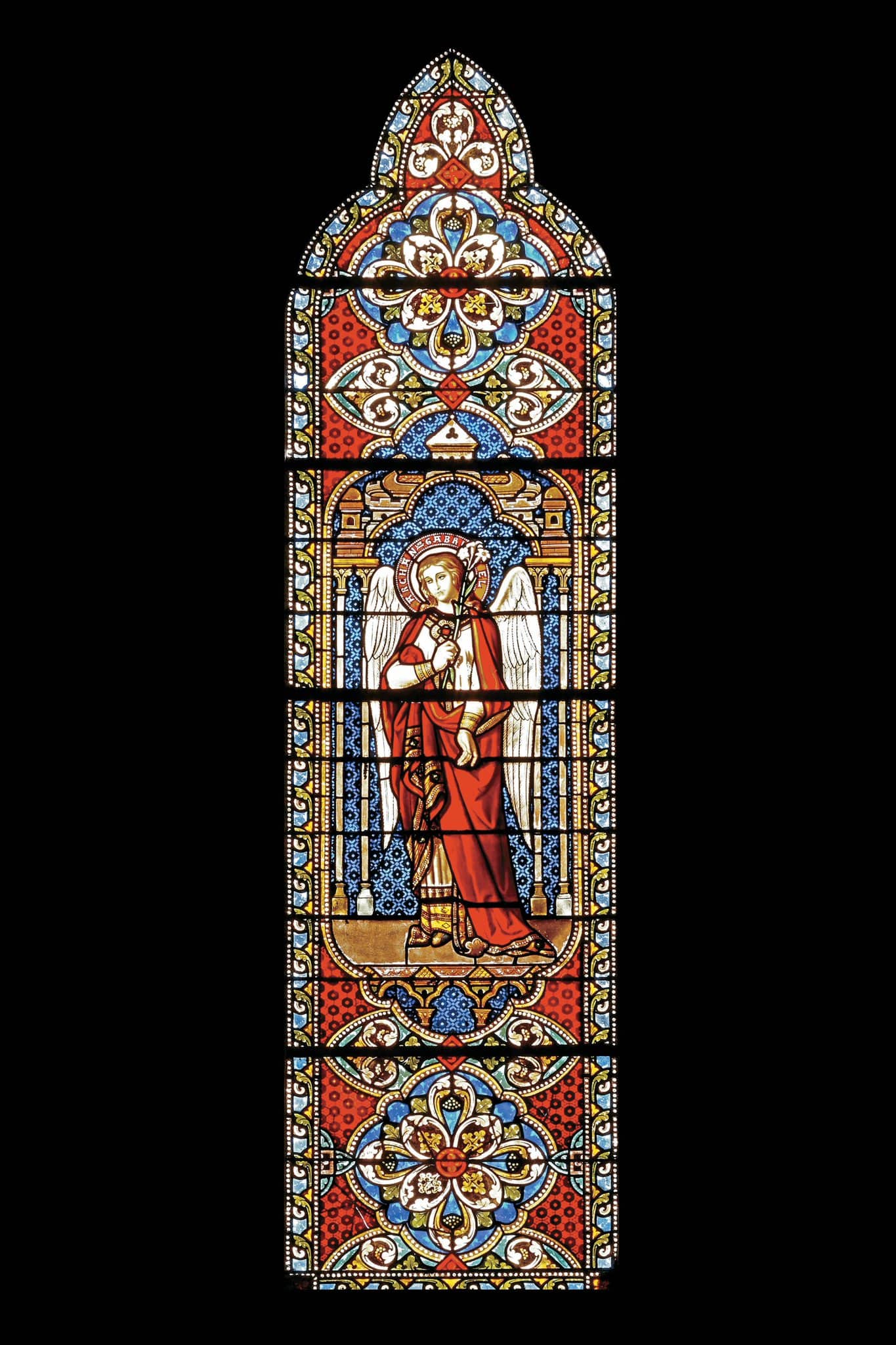 L’Archange Gabriel tient un lys blanc.
