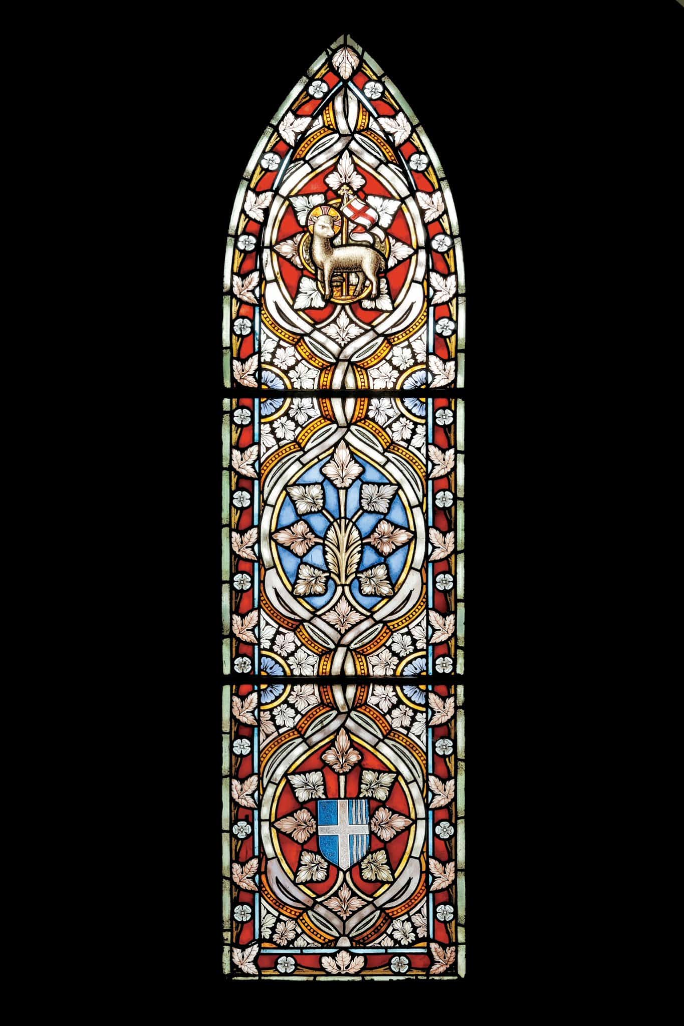 L’agneau pascal et les armoiries de Versoix-la-Ville sont entourés de motifs végétaux.