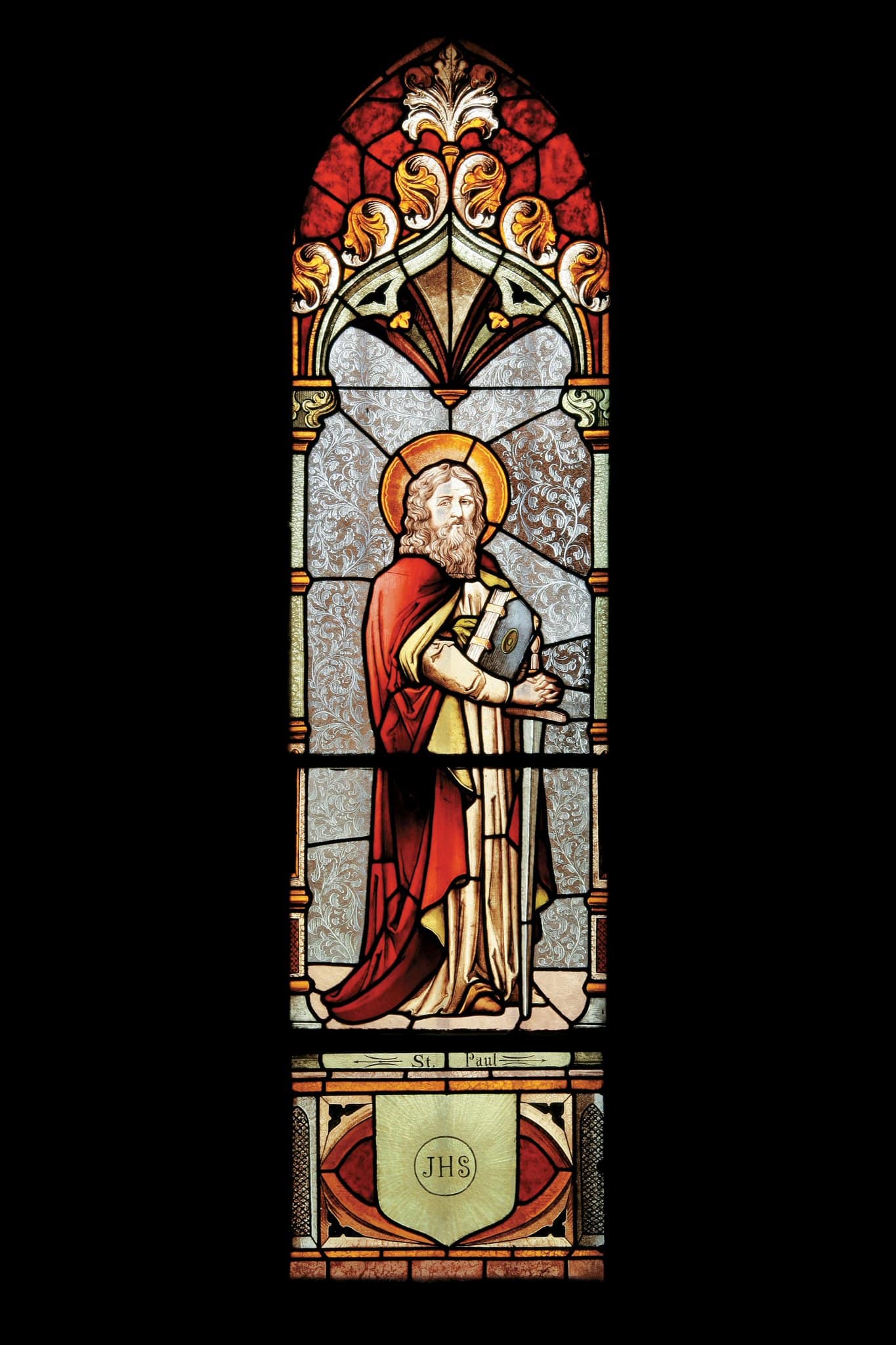 St. Paul (bandeau sous le saint) / JHS (en bas au centre)