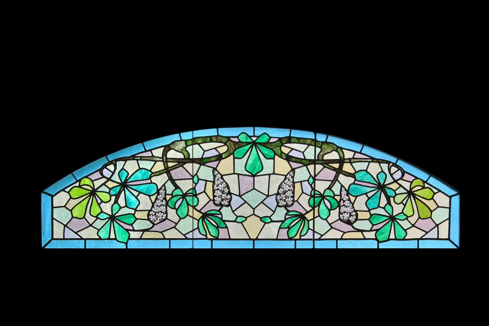 Des fleurs de marronnier se déploient sur un fond décoratif de nid-d’abeilles.