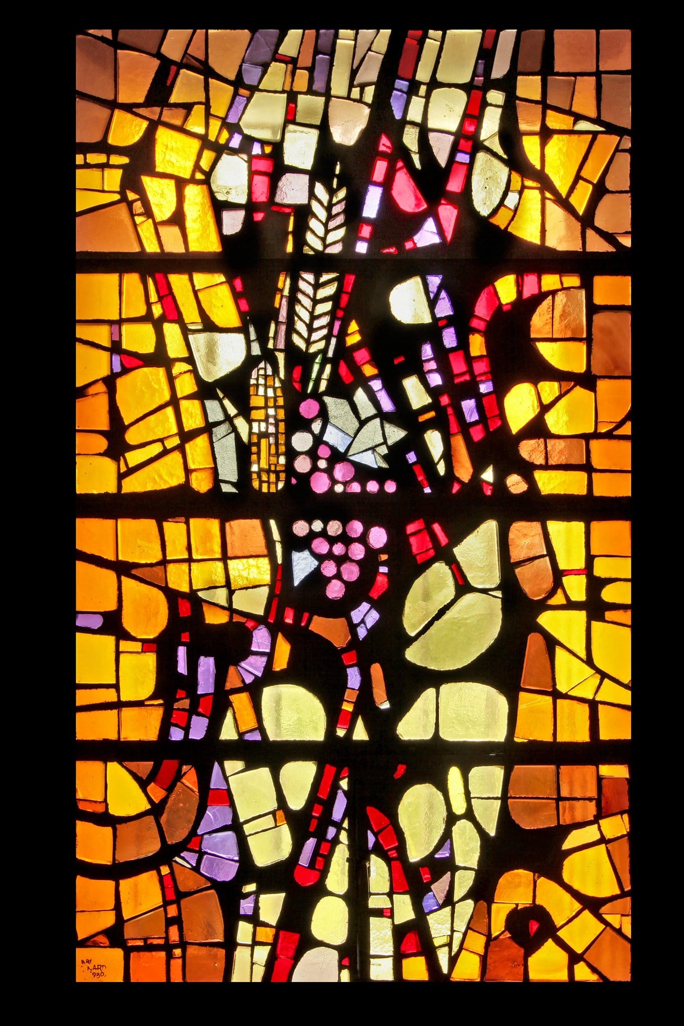 L’eucharistie est symbolisée par un épi de blé et une grappe de raisin sur un fond noir exprimant le labeur. Figurés au centre d’un décor d’or symbolisant l’amour valorisant toute vie, ils sont accompagnée d’un épi de maïs. Ces trois éléments sont les cultures typiques pour Corsier.