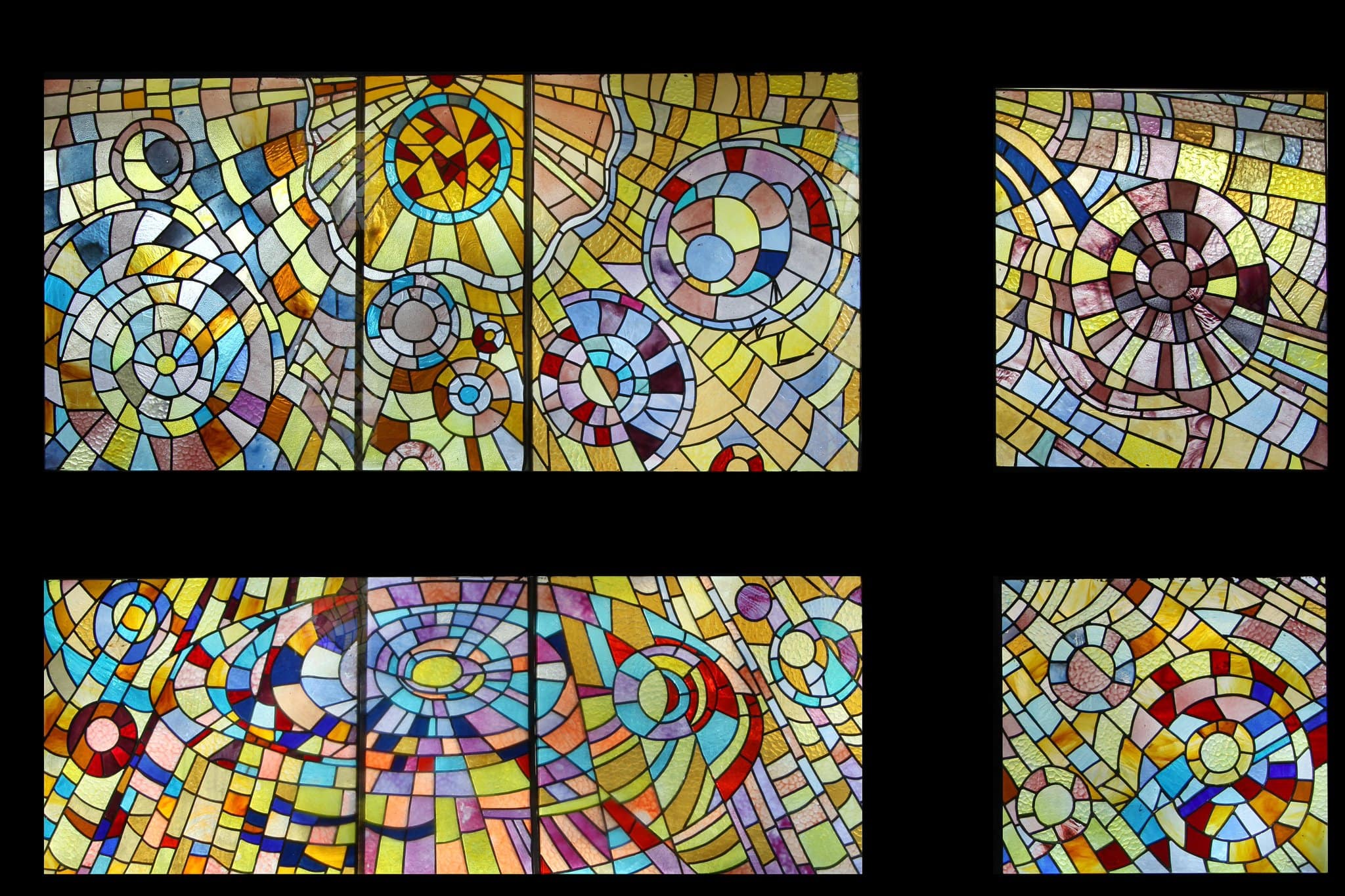 L’univers composé de plusieurs galaxies réparties sur quatre panneaux.