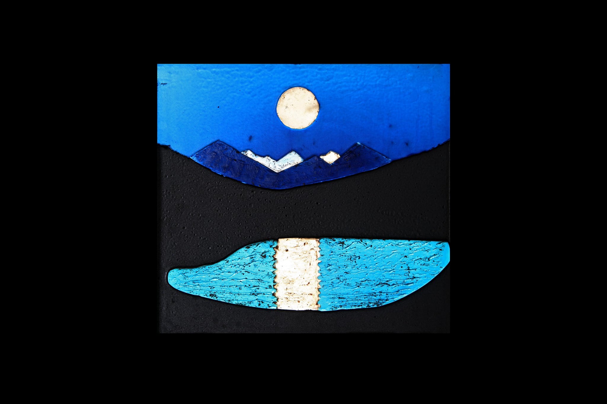 La pleine lune se lève au-dessus de montagnes et se reflète dans un lac.