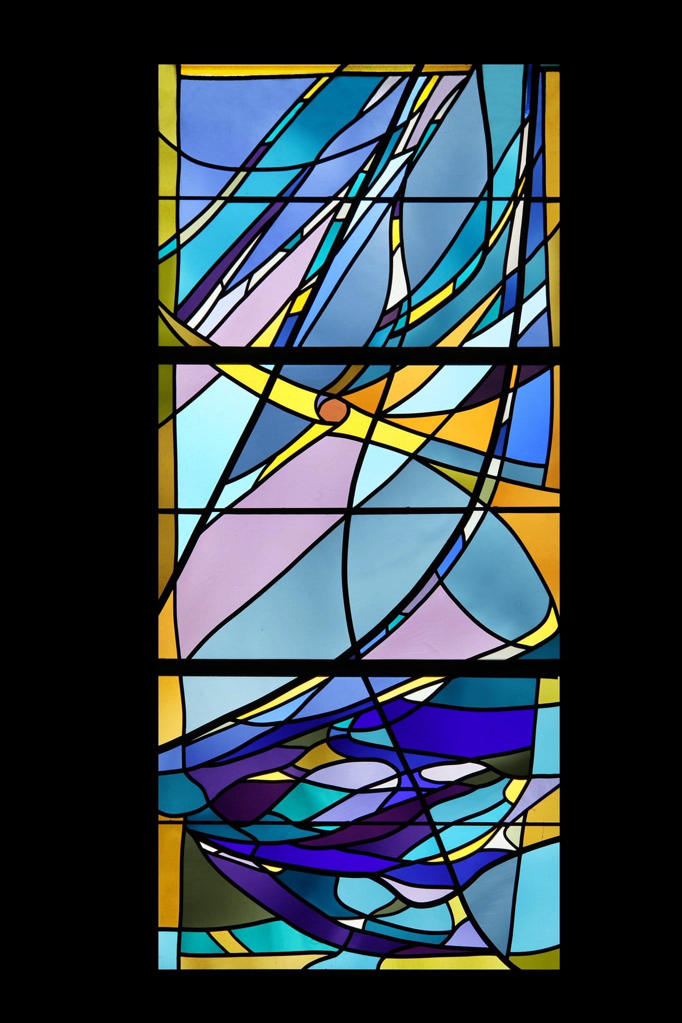 Ce vitrail relate le deuxième jour de la Création du monde. Dieu, symbolisé par un être lumineux, sépare les eaux. Il retient les eaux du ciel dans la partie supérieure, alors qu’en bas, les océans se rassemblent. Entre-deux jaillit le firmament.
