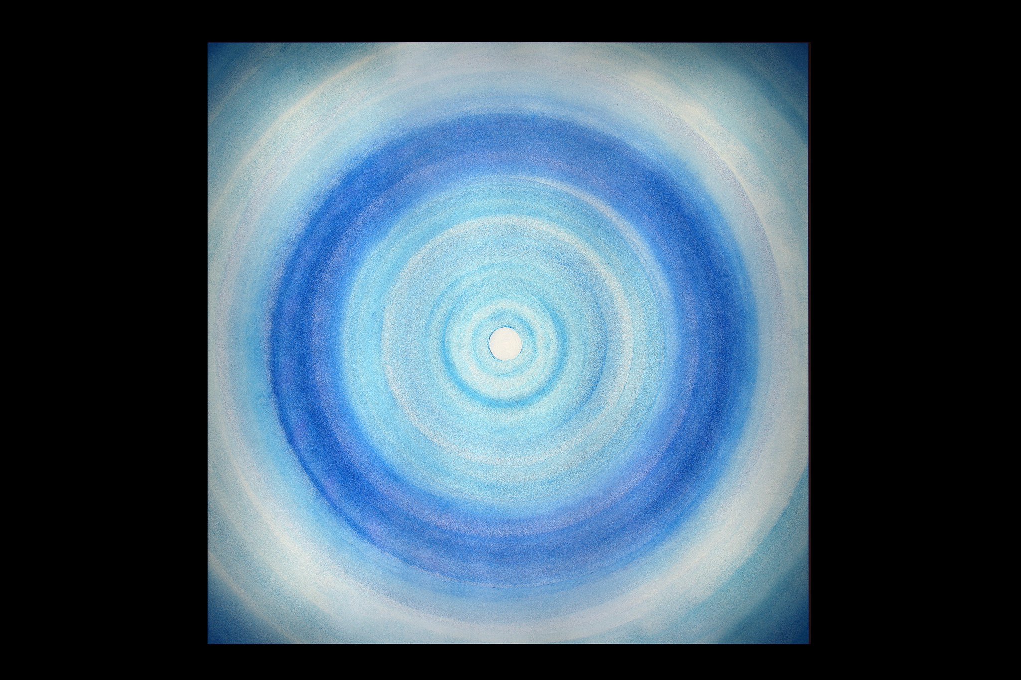 Tableau lumineux inspiré de l'arc-en-ciel. Grand cercle aux nuances de bleu.