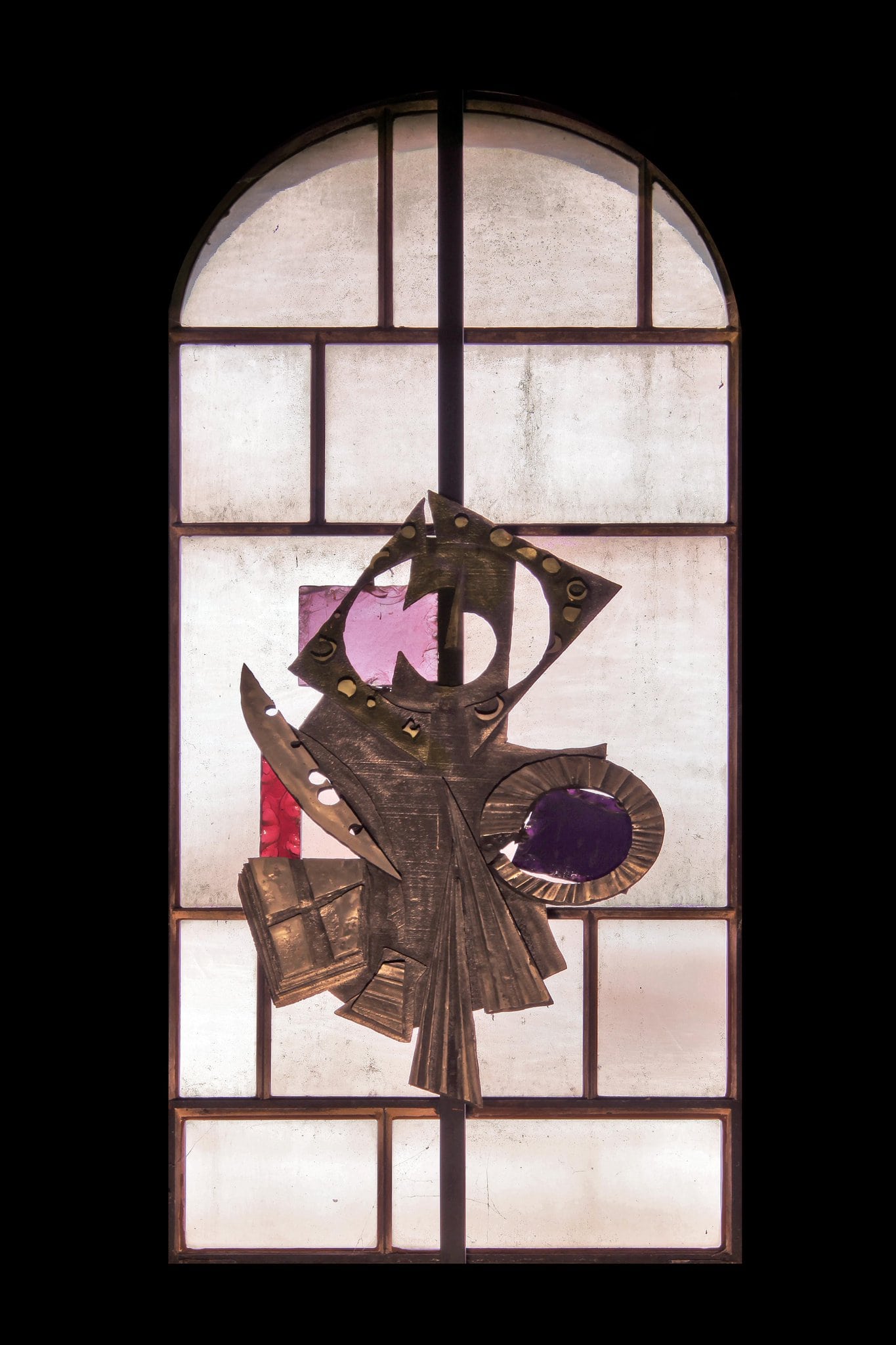 Dalle de verre, métal, fer, vitrail au plomb