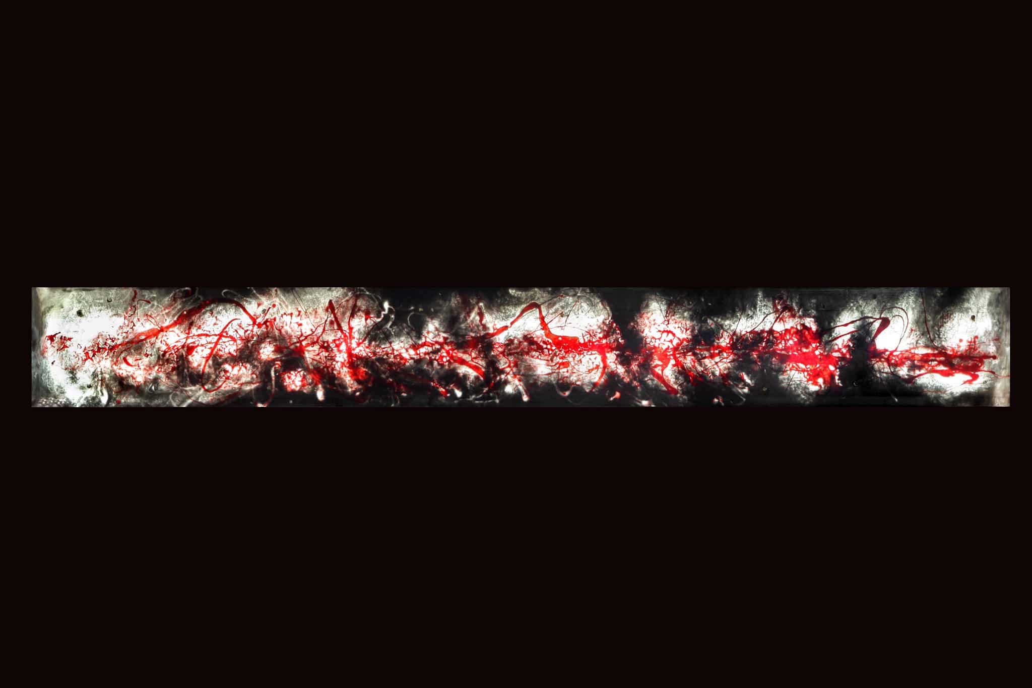 Un dessin et des lignes rouges sur un fond noir et blanc.