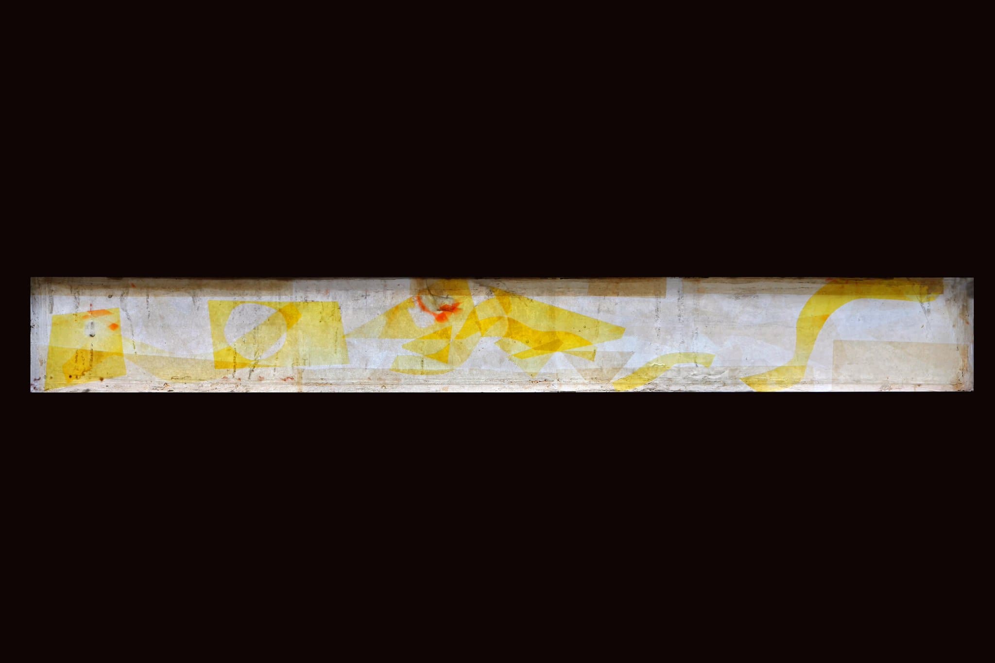 Des grandes taches jaunes avec quelques petites touches oranges sur un fond blanc.