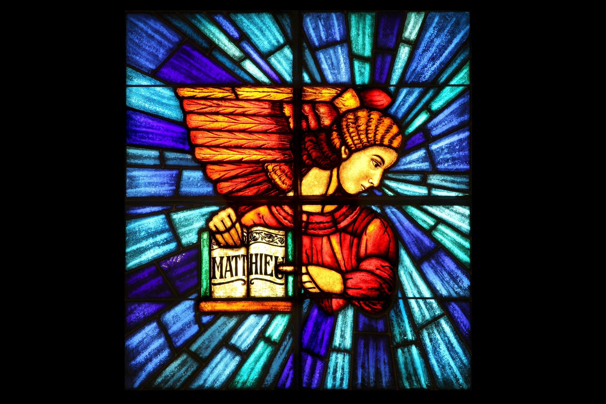 11H(MATTHEW)9 · Matthieu, apôtre et évangéliste; attributs possibles : ange, hache, livre, hallebarde, plume et encrier, bourse, rouleau, équerre, épée - portrait du saint