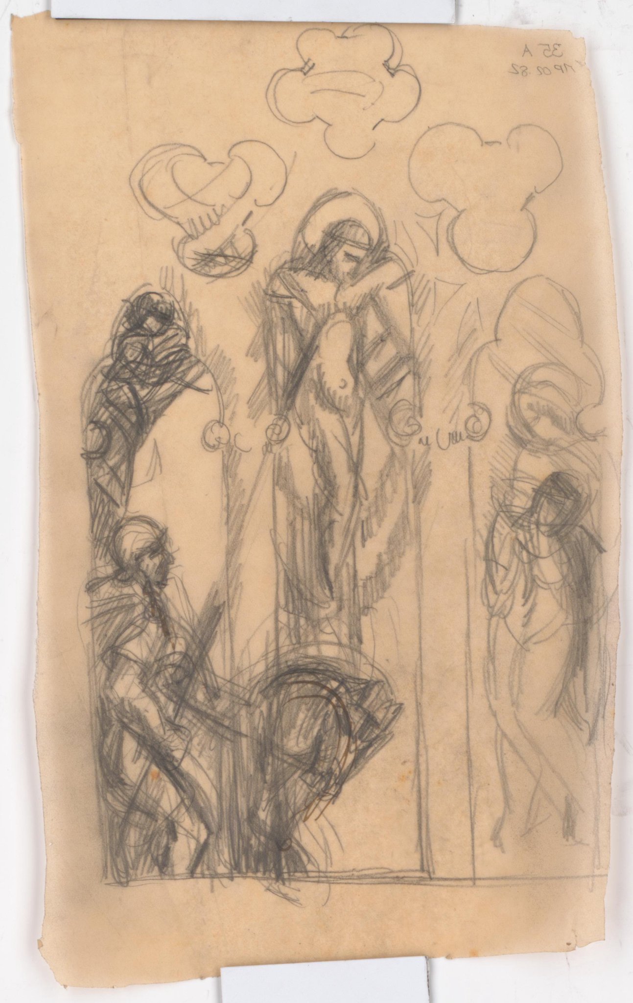 Esquisse du vitrail de la Crucifixion et des personnages de la lancette de droite
