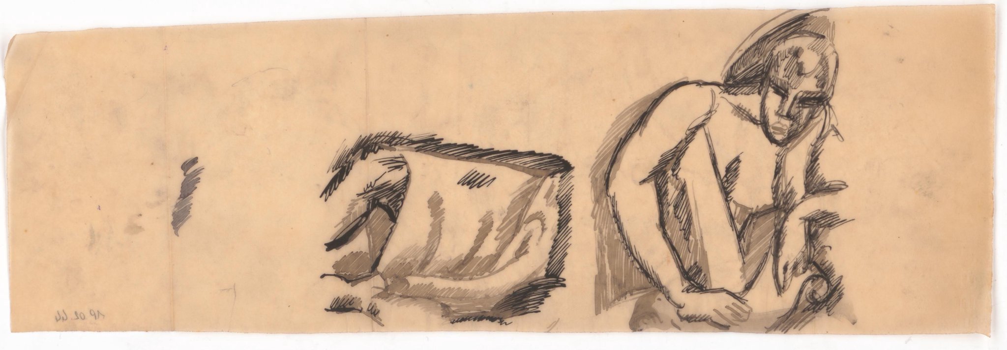 Saint Jean ou saint Luc couché et esquisses de pieds