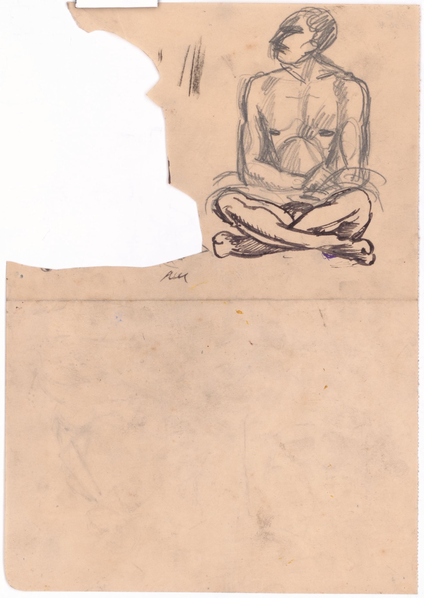 Ce projet fait probablement partie des premiers travaux de Poncet pour le vitrail des quatre Evangélistes, où il étudie la posture de saint Mathieu assis. Des photographies retrouvées dans les archives Poncet à Vich indiquent que l'artiste a eu recours à un modèle pour définir l'anatomie de ses personnages.