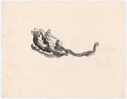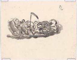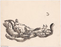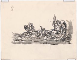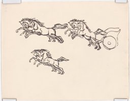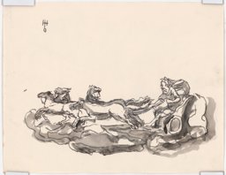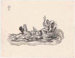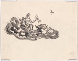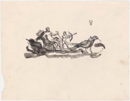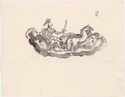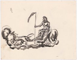 Esquisse pour des vitraux sur le thème de la "carte du ciel" : le Dieu Uranus sur un char, tiré par deux lions. En haut à gauche : symbole de la planète Uranus.