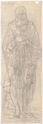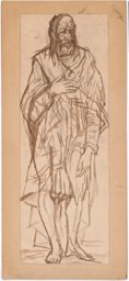 Samuel en pied, regardant sur la droite, une main sur la poitrine. (Projet en deux parties appondues)