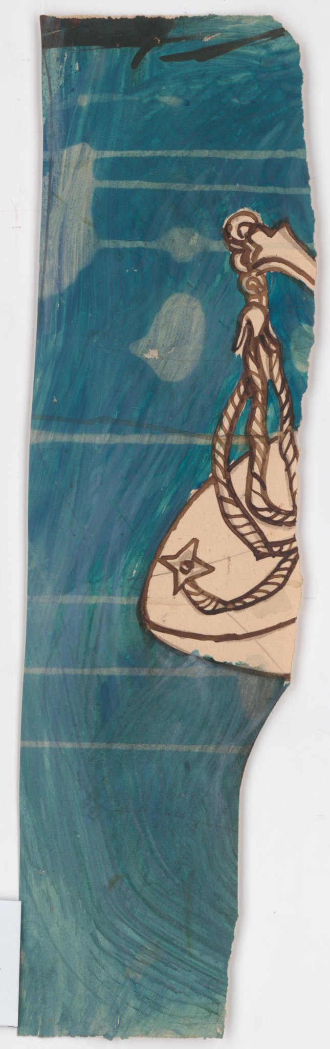 Esquisse fragmentaire en couleur pour des vitraux sur le thème de la "carte du ciel" : la Balance, sur fond bleu. Une grande partie de la composition est manquante.