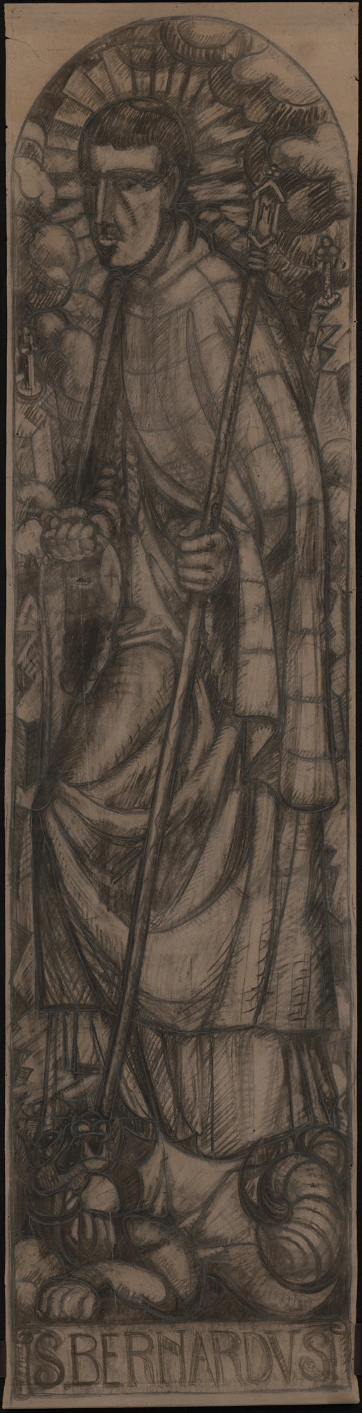 Ce travail préparatoire a été réalisé par Marcel Poncet dans le cadre d'une commande de vitraux obtenue en 1917 pour la chapelle de la Prévôté du Grand-Saint-Bernard à Martigny, en Valais.