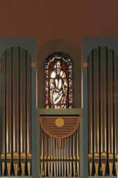 Son style a lui aussi évolué. Il a peu à peu abandonné les formes douces et les coloris lumineux qui caractérisent ses vitraux des bas-côtés de la nef de 1915, marqués par l’Art nouveau et le style de Maurice Denis, pour privilégier une touche plus expressive et nerveuse, servie par des coloris plus sombres, traités en camaïeu. On retrouve ces caractéristiques sur des œuvres préparatoires contemporaines des trois vitraux de la tribune de Saint-Paul, réalisées entre 1924 et 1927 pour la verrière de la Crucifixion de la cathédrale de Lausanne, la dernière œuvre qu’il sera autorisé à poser dans l’édifice (voir par exemple MP_02.100 ; MP_02.94). En 1925, l’artiste part s’installer à Paris, où il découvre la gravure, technique qui lui plaît par sa puissance graphique reposant sur l’opposition du noir et du blanc, et qu’il tentera de traduire en vitrail la même année à la chapelle du collège de l’Abbaye de Saint-Maurice (par exemple MP_09.07). Ces différents travaux soulignent la nouvelle direction artistique prise par l’artiste à partir de 1924, et que l’on peut déjà ressentir dans les vitraux de la tribune de Saint-Paul.