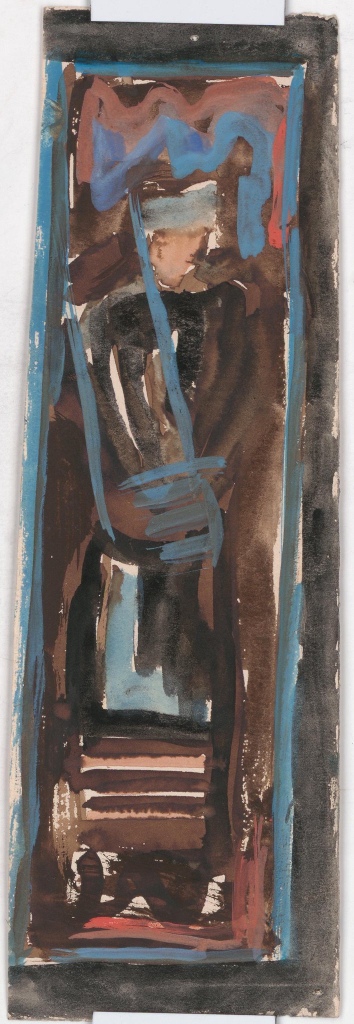 Poncet conçoit une première série de projets très colorés, dont font partie ces petites esquisses, qu'il délaisse subitement dans un second temps pour se tourner vers des figures de saints torturés et pathétiques qu'il réalise à la sépia, se rapprochant beaucoup plus du résultat des vitraux. On ignore cependant pourquoi Poncet modifie d'une manière aussi radicale son projet, d'autant qu'il ne semble pas en avoir averti les commanditaires, très choqués au moment de leur pose.