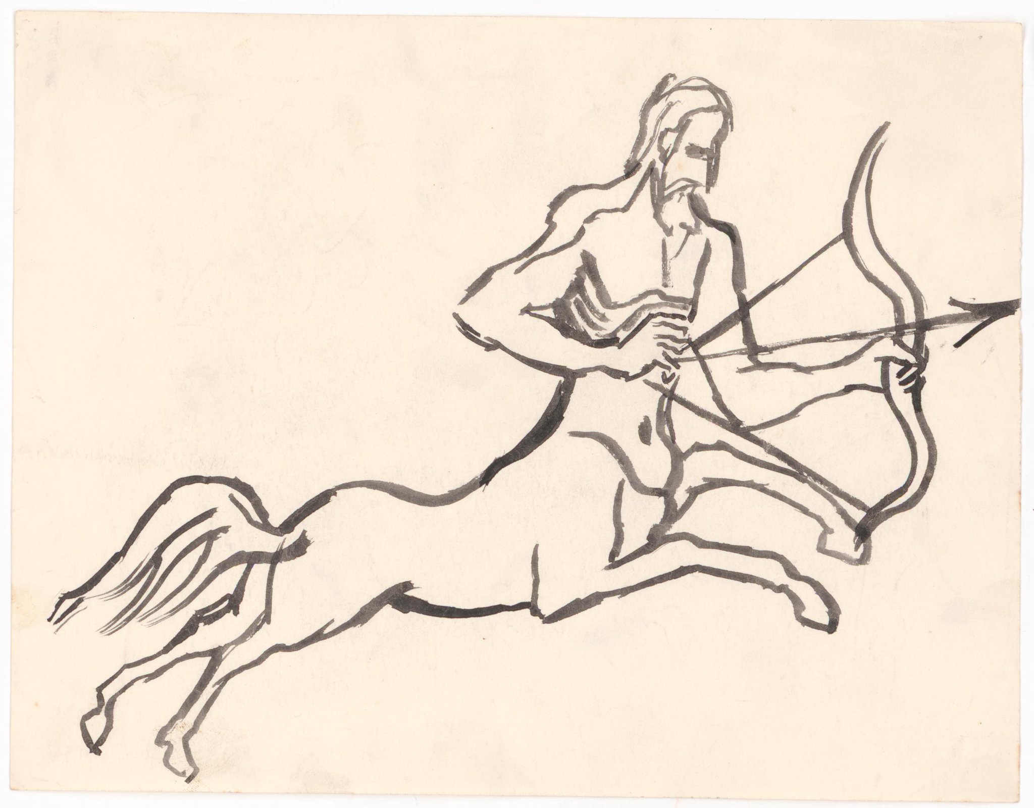 Esquisse pour des vitraux sur le thème de la "carte du ciel": le Sagittaire de profil, tendant son arc.