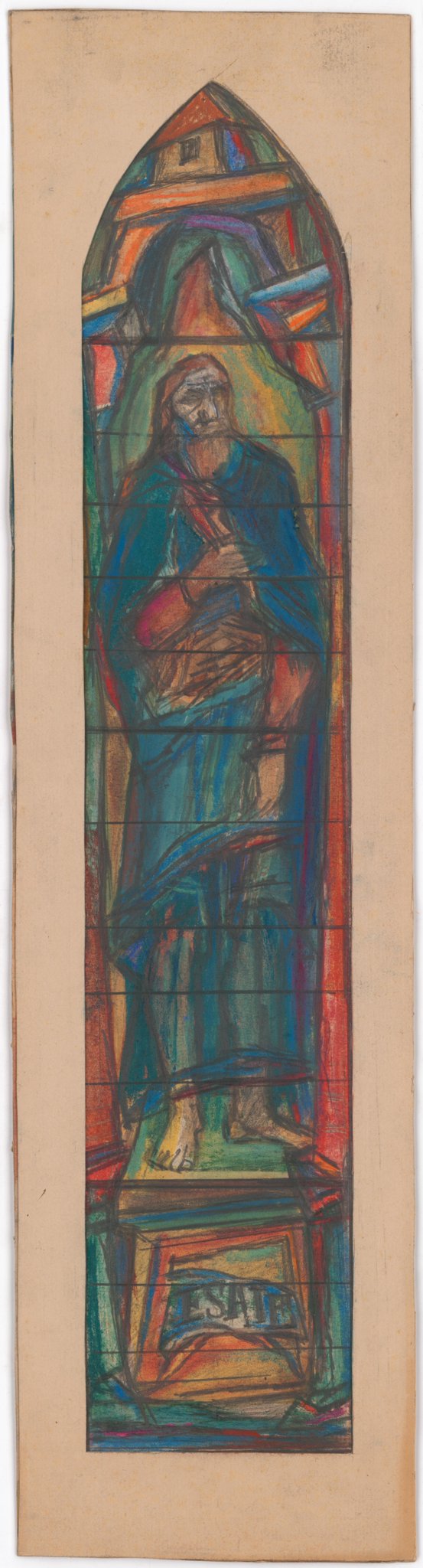 Ce travail préparatoire a été réalisé par Marcel Poncet dans le cadre d'une commande de vitraux pour la collégiale de Neuchâtel.