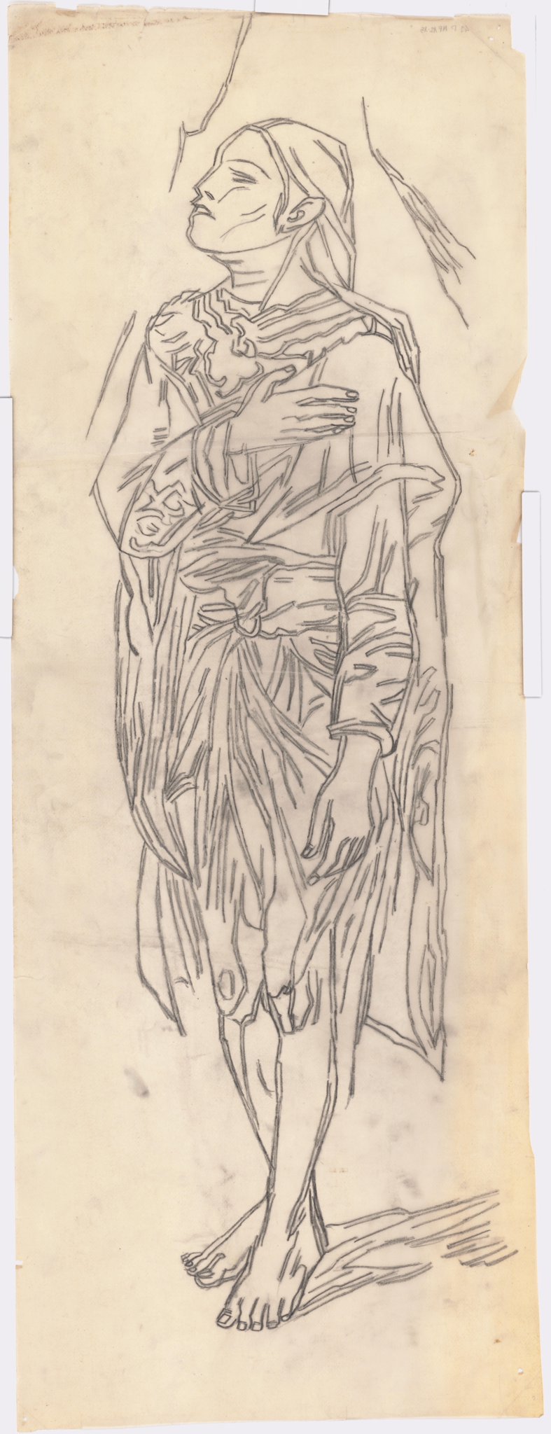 Ce travail préparatoire a été réalisé par Marcel Poncet dans le cadre d'une commande de vitraux pour la collégiale de Neuchâtel.