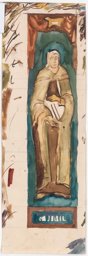 Ce travail préparatoire a été réalisé par Marcel Poncet dans le cadre de la commande de quatre vitraux des Evangélistes pour la Reformierte Kirche de Schlieren (Zurich), réalisés en 1937. Poncet obtient cette commande par l'intermédiaire de l'architecte de l'édifice, Walter Henauer (1880-1975), qu'il a rencontré à l'occasion de ses séjours parisiens. Suite à la pose des vitraux, il propose pour cette même église un projet de carte du ciel (représentations du zodiaque, des planètes et leurs personnifications), qui est refusé par la commission, pour des raisons avant tout financières (REYMOND, 1992, pp. 70, 170 ; "Neue reformierte Kirche in Zürich-Wollishofen und neue Kirche und Renovation der alten Kirche in Schlieren : Architekten W. Henauer & E. Witschi SA, Zürich.", 1938, pp. 297-304).