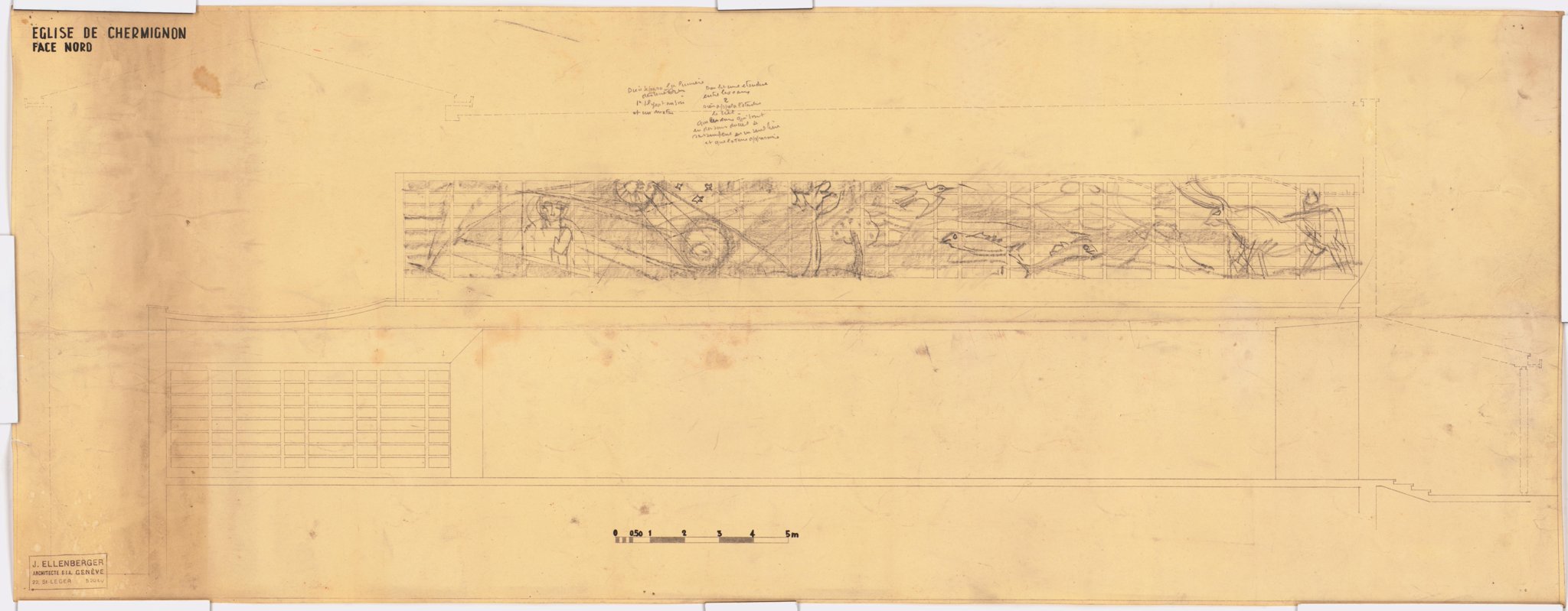 Ce travail préparatoire a été réalisé entre 1951 et 1952 par Marcel Poncet dans le cadre d'une commande de vitraux pour l'église Saint-Georges de Chermignon (VS).