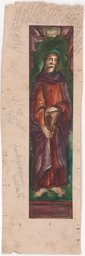 Ce travail préparatoire a été réalisé par Marcel Poncet dans le cadre de la commande de quatre vitraux des Evangélistes pour la Reformierte Kirche de Schlieren (Zurich), réalisés en 1937. Poncet obtient cette commande par l'intermédiaire de l'architecte de l'édifice, Walter Henauer (1880-1975), qu'il a rencontré à l'occasion de ses séjours parisiens. Suite à la pose des vitraux, il propose pour cette même église un projet de carte du ciel (représentations du zodiaque, des planètes et leurs personnifications), qui est refusé par la commission, pour des raisons avant tout financières (REYMOND, 1992, pp. 70, 170 ; "Neue reformierte Kirche in Zürich-Wollishofen und neue Kirche und Renovation der alten Kirche in Schlieren : Architekten W. Henauer & E. Witschi SA, Zürich.", 1938, pp. 297-304).