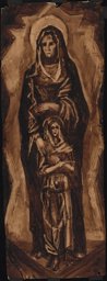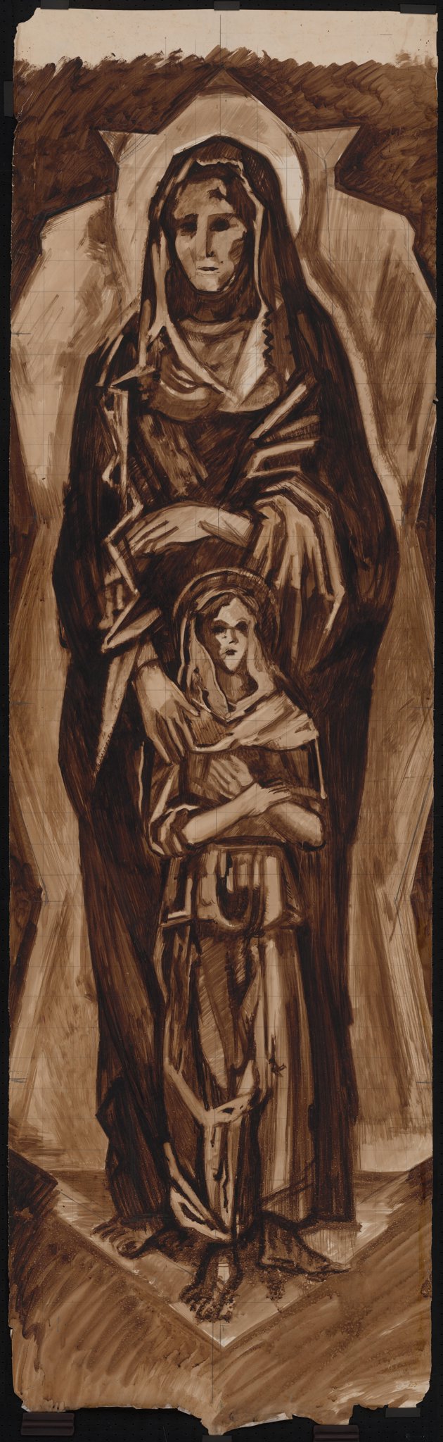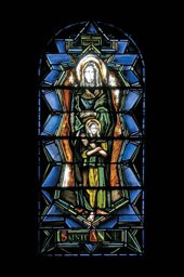 Ce carton a été réalisé par Marcel Poncet pour le vitrail de sainte Anne de la nef de l'église Saint-Maurice de Veyrier (GE).