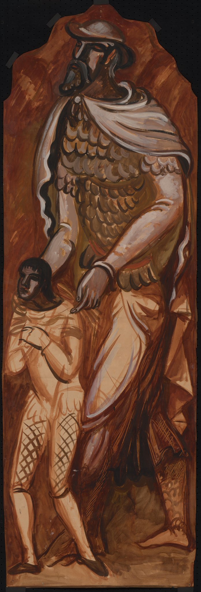 Ce travail préparatoire a été réalisé en 1924 par l’artiste Marcel Poncet dans le cadre de la commande de trois vitraux pour la tribune des orgues de l'église Saint-Paul de Cologny (GE), représentant Melchisedech (GE_08.21), Moïse (GE_08.22) et David (GE_08.23).