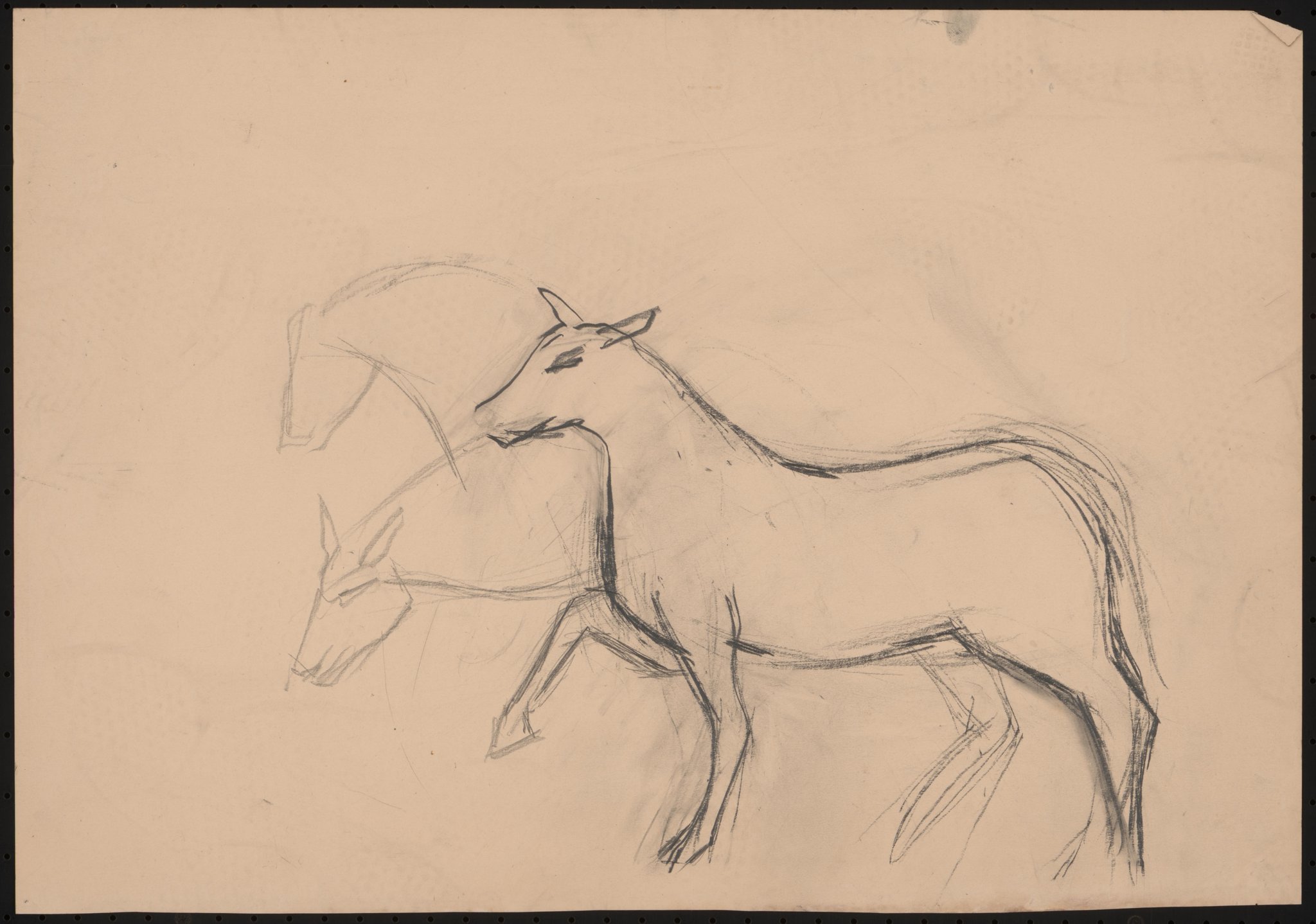 Animal de type équidé représenté dans le style des peintures préhistoriques, pour illustrer la création des animaux.