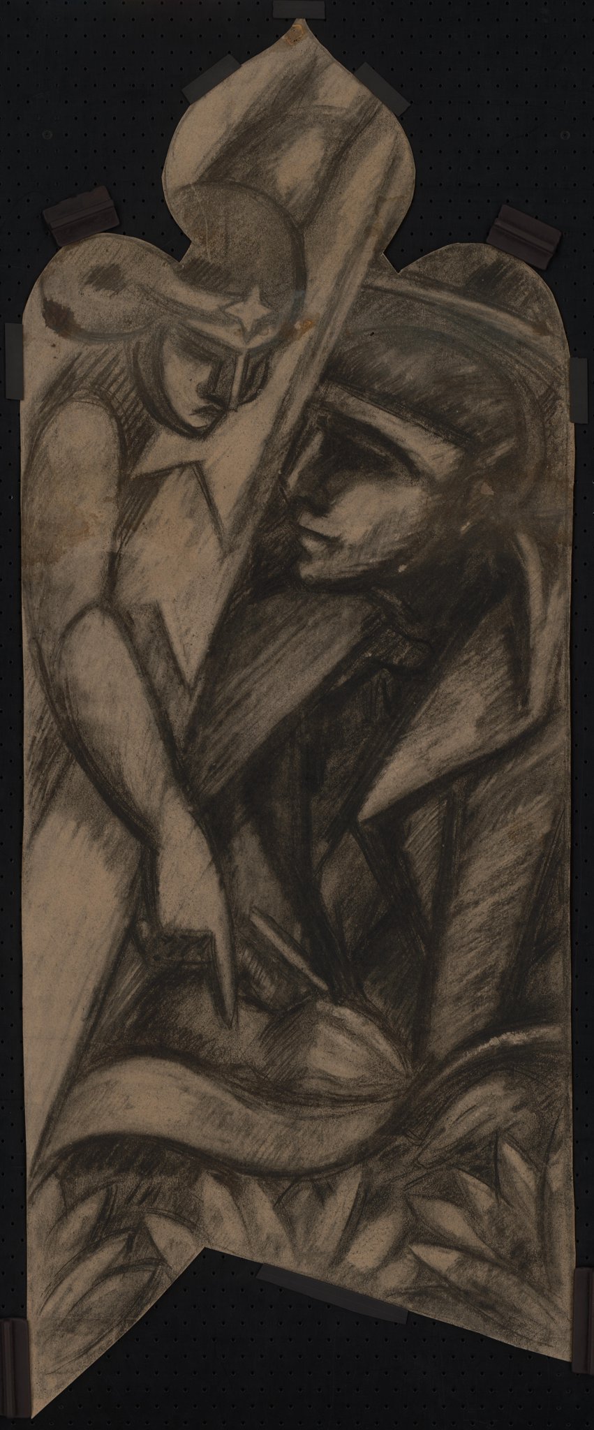 En 1918-1919, Marcel Poncet participe à un concours pour les vitraux de la cathédrale de Lausanne. Jeune artiste catholique et genevois de surcroît, il part avec un sérieux handicap face à Louis Rivier et Ernest Biéler dont le métier est confirmé. Poncet parvient tout de même à l'emporter grâce à son projet sur Aymon de Montfalcon, dont la Commission des vitraux loue la clarté de composition. Très enthousiaste, Poncet élabore un programme complet pour l'ensemble des verrières de la cathédrale, travail qui lui aurait assuré du travail et un salaire pendant de nombreuses années. La Commission le charge en premier lieu d'un vitrail pour le portail ouest, sur le thème des quatre Évangélistes, à la réalisation duquel Poncet se consacre durant près de trois ans, donnant lieu à un grand nombre de travaux préparatoires. Le vitrail est enfin posé en mars 1922, mais déclenche une vive polémique dans la presse, attisant tantôt la haine du public, tantôt son admiration. Jugé trop moderne, le dessin mal maîtrisé, choquant par son échelle et l'éclat de ses couleurs, le vitrail devient l'enjeu d'une querelle qui le dépasse, des "anciens" contre les "modernes". Suite à ce scandale, Poncet ne pourra réaliser à la cathédrale qu'un ultime vitrail, celui de la Crucifixion, achevé en 1927 (NOVERRAZ, 2014, pp. 34-40 ; DONCHE GAY et HUGUENIN, 2003, pp. 12-14 ; DONCHE GAY, 1994, pp. 37-47 ; REYMOND, 1992, pp. 51-55).