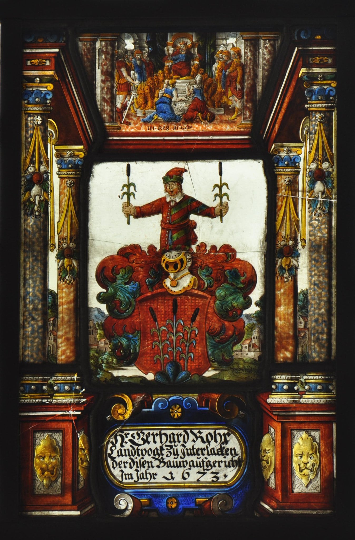 Hr. Gerhard Rohr / Landtvogt Zů Interlacken / der disen Bauw aufgericht / Jm Jahr 1673.