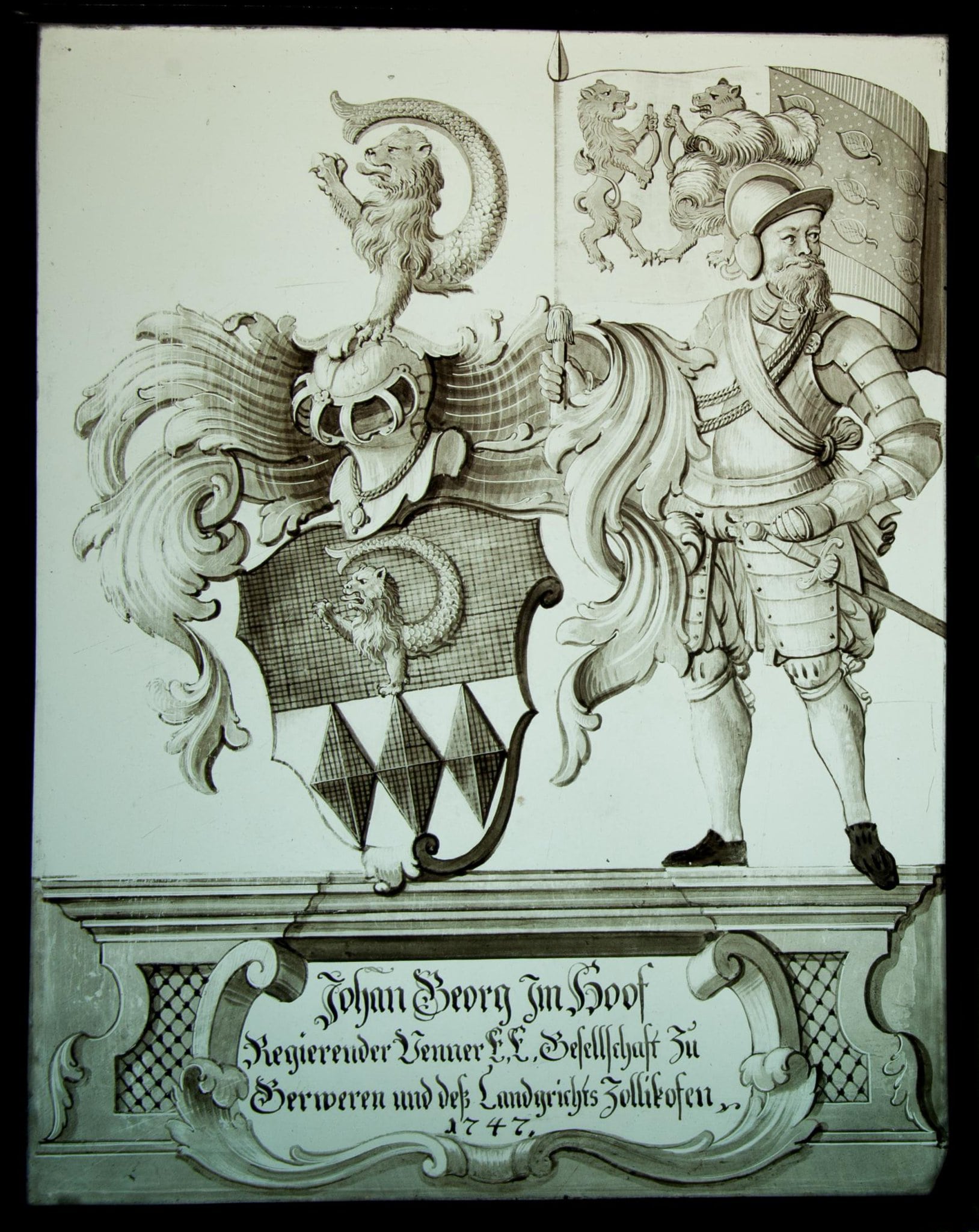 Johan Georg Jm Hoof / Regierender Venner E. E. Gesellschaft Zů / Gerweren und deβ Landgrichts Zollikofen / 1747.