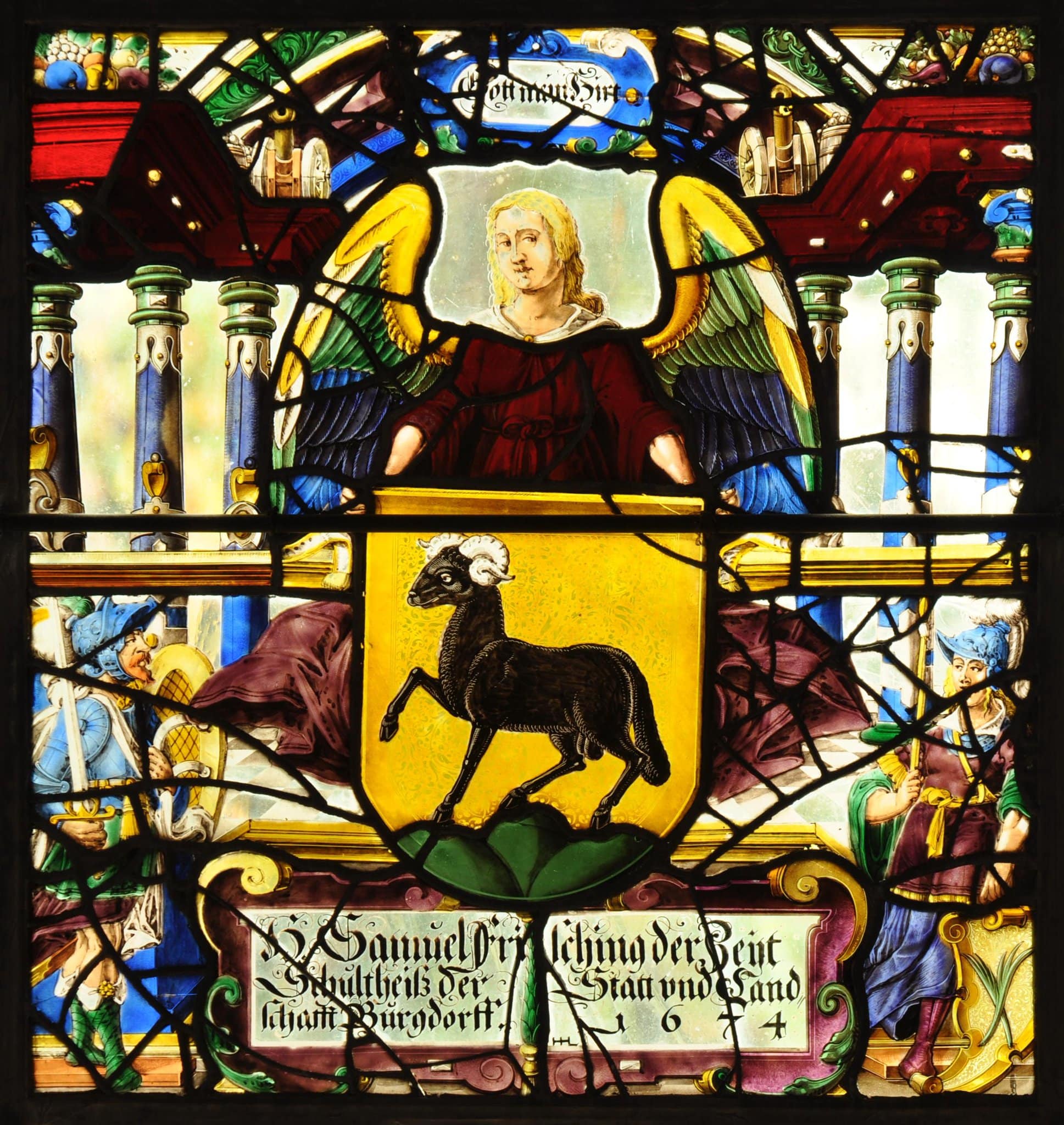 H. Samůel Frisching der Zeyt / Schůltheiβ der Statt vnd Land / schafft Bůrgdorff. 1674 / HHL.