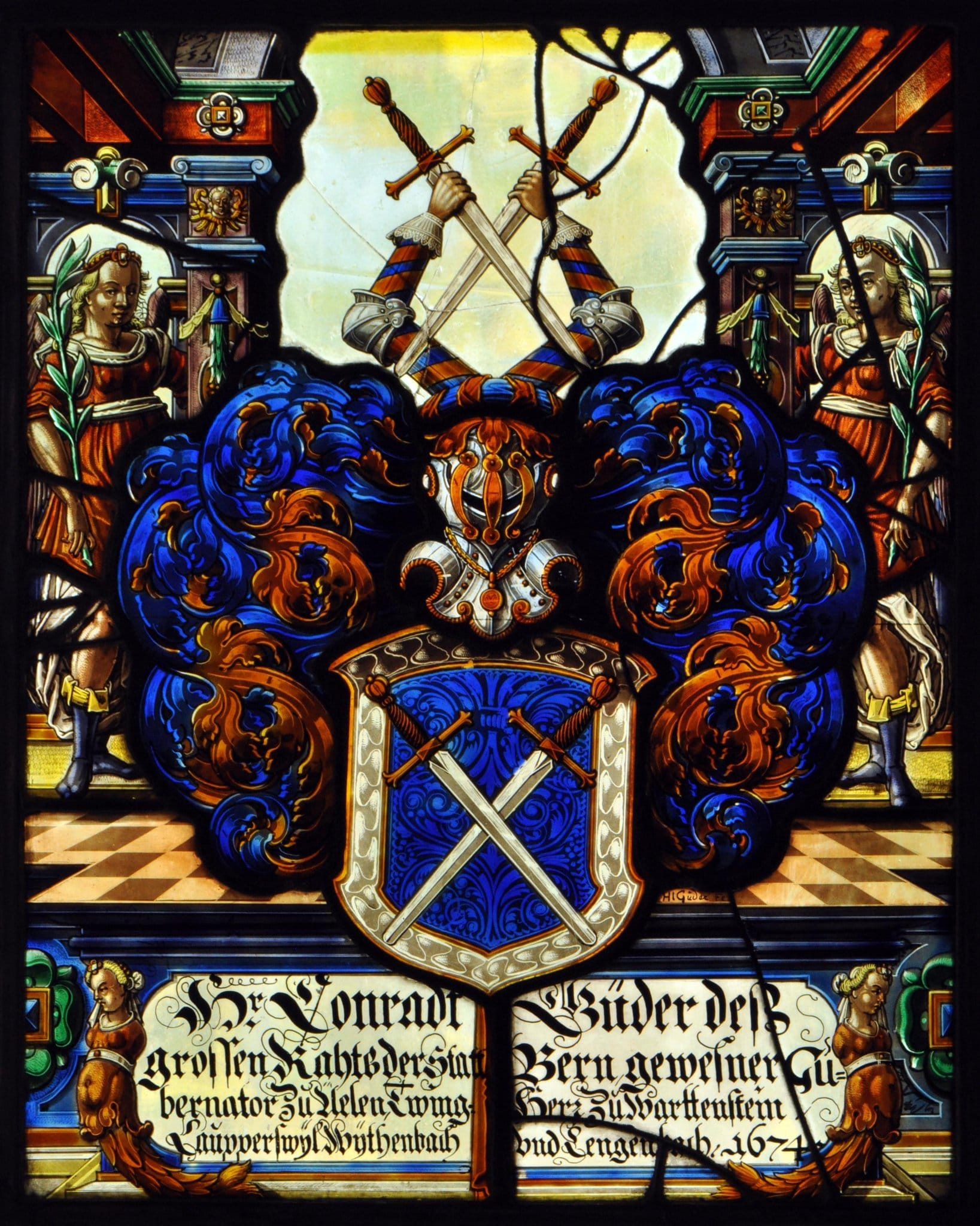 Hr. Conradt Güder deß / grossen Rahtß der Statt Bern gewesner Gu= / bernator Zů Aelen Twing= Herr Zů Warttenstein / Laupperswÿl Wÿthenbach vnd Lengenbach 1674.