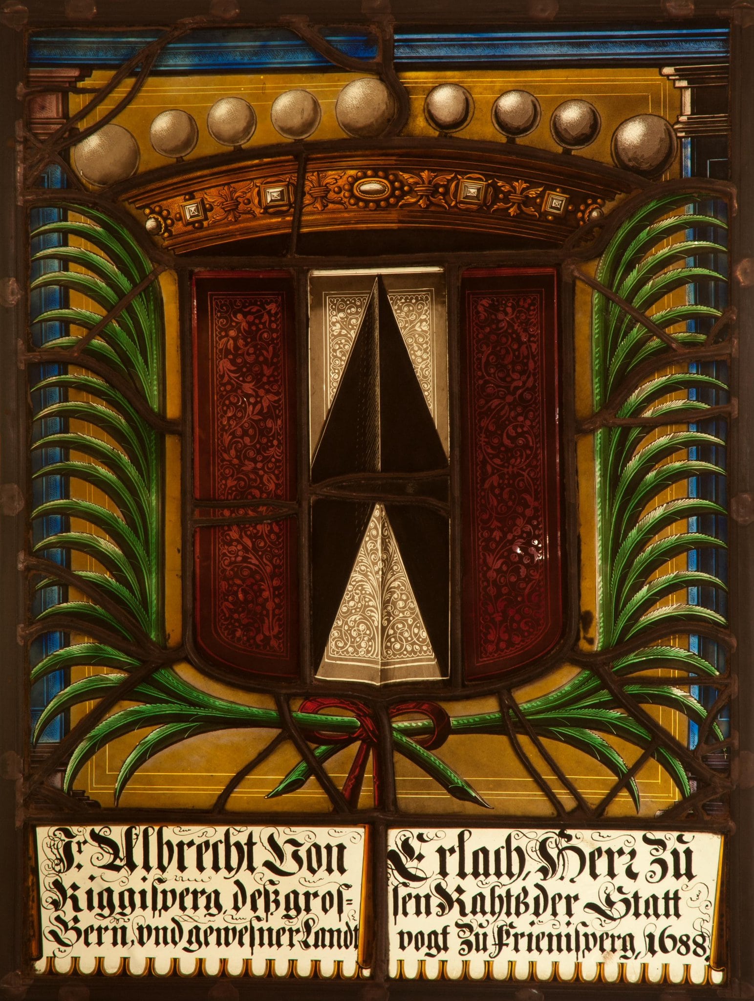 Hasler, R., & Schiffhauer, A. (2016). Wappenscheibe Albrecht von Erlach. Dans Vitrosearch. Consulté le 5 décembre 2025 de https://www.vitrosearch.ch/objects/2248936.