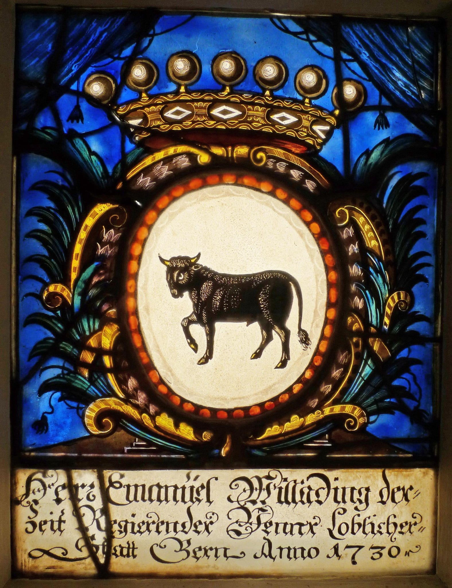 Wappenscheiben Emanuel Willadings haben sich auch in den Kirchen von Frutigen (1728), Herzogenbuchsee (1728) und Hilterfingen/Oberhofen (1728) erhalten.