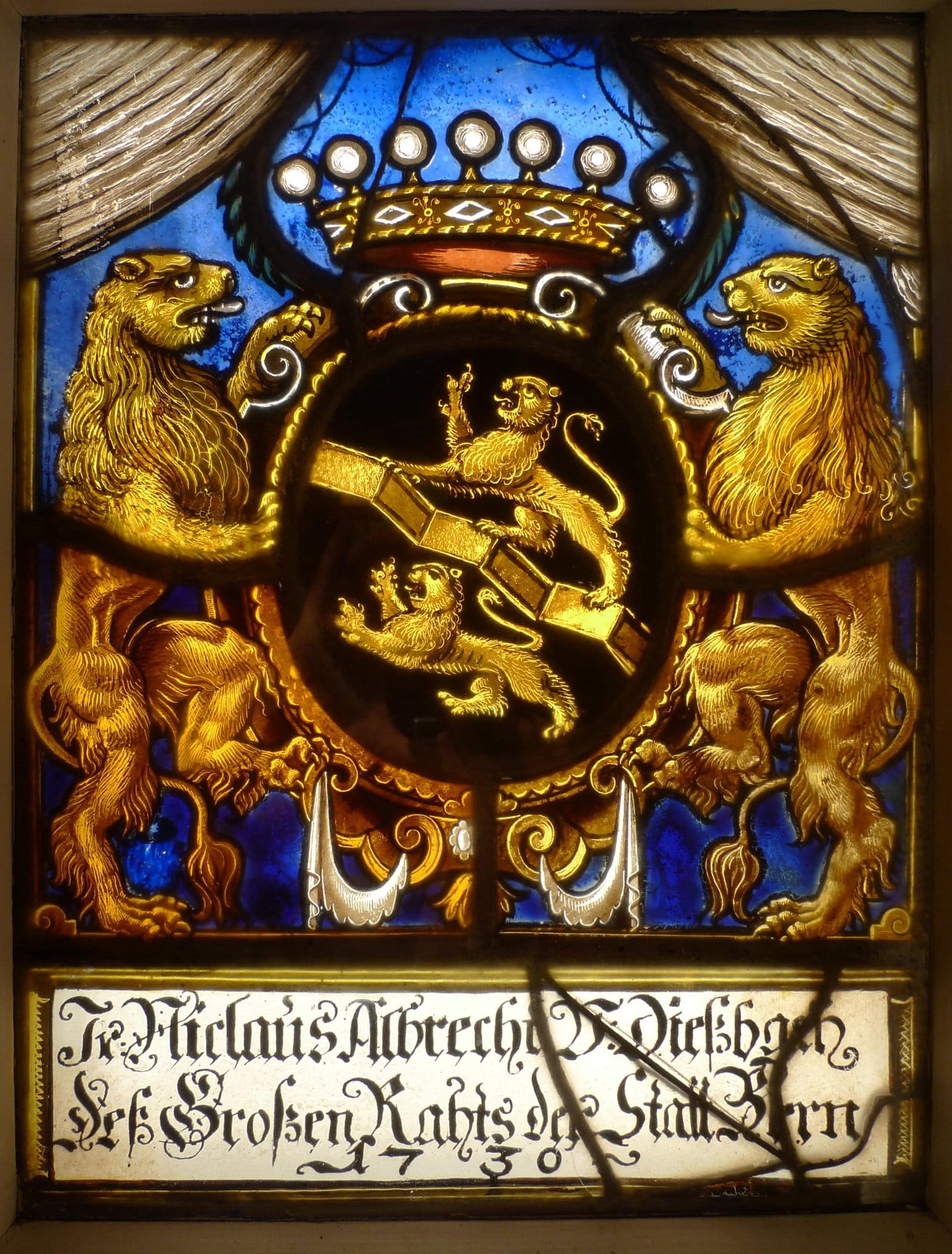 Bern, Fotos Louis Halter (Scheibe im Zustand vor und nach Renovation) als Depositum des Bernischen Historischen Museums im Vitrocentre Romont (Inv. 25255); SNM Zürich, Neg. 9973 (Andreas Fueter)