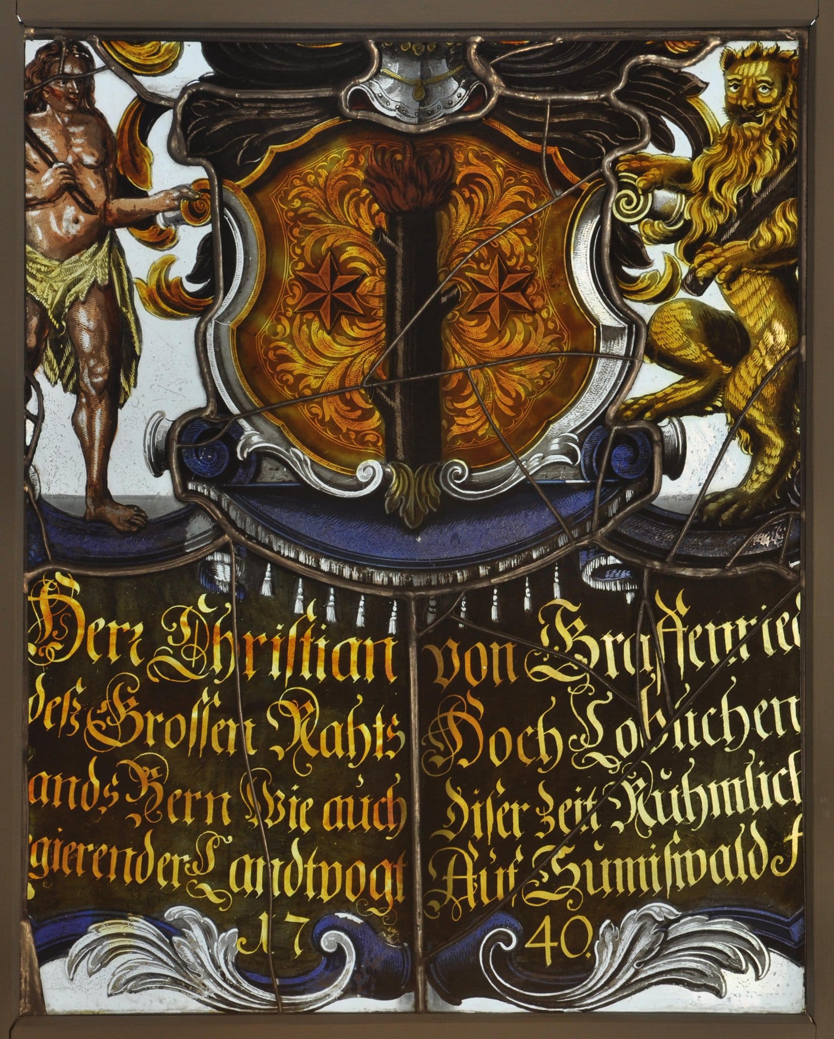 Hasler, R., Keller, S., & Bergmann, U. (2016). Wappenscheibe Christian von Graffenried. Dans Vitrosearch. Consulté le 5 décembre 2025 de https://www.vitrosearch.ch/objects/2249989.