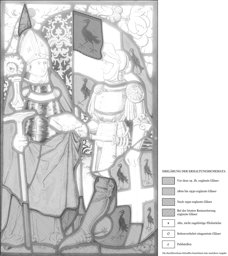 Farbloses und farbigies Glas; Bemalung mit Schwarzlot und Silbergelb.