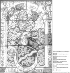 Die Scheibe ist analog gestaltet wie diejenige von Ludwig I. von Diesbach.