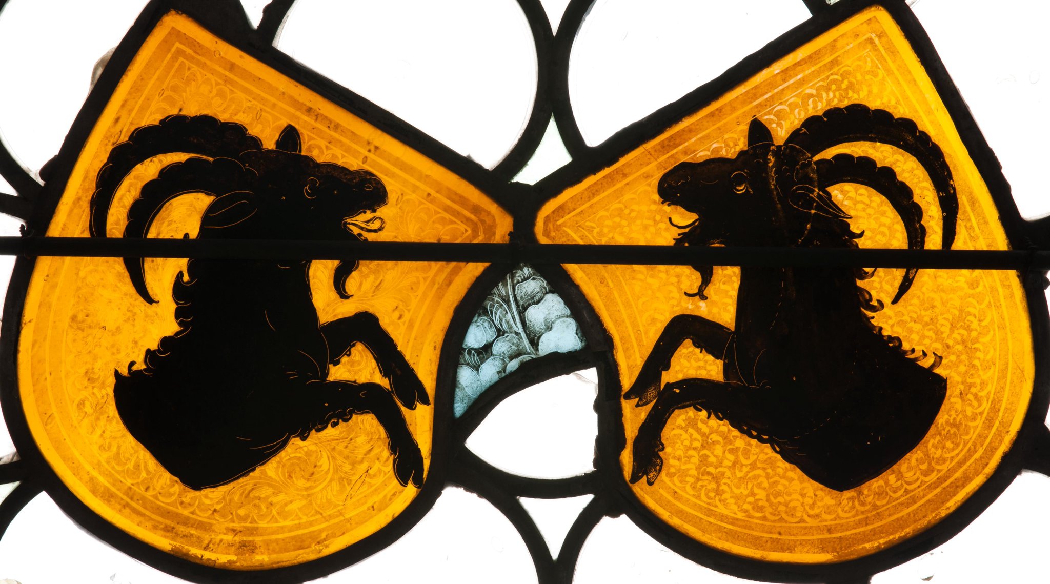 Die zwei Wappenschilde mit den Steinböcken hat Hans Drenckhahn am 18. Dezember 1911 auf einer Pause festgehalten. Diese befindet sich in seinem Nachlass im Vitrocentre Romont (Mappe 1).