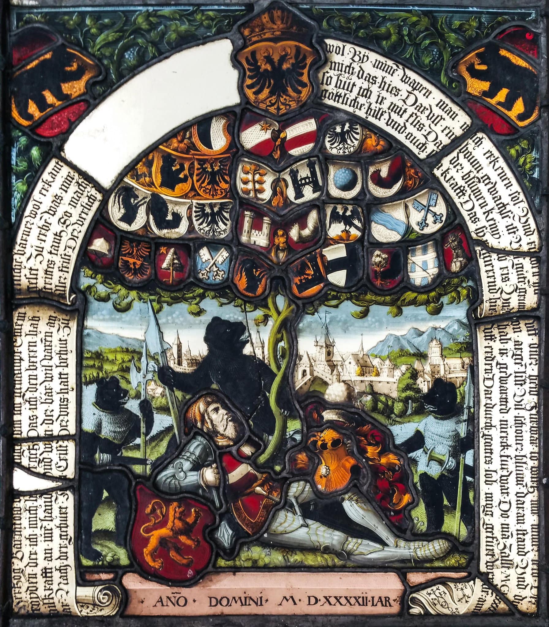Hasler, R., & Keller, S. (2016). Ämterbaumscheibe Bern mit Herzog Berchtold V. von Zähringen. Dans Vitrosearch. Consulté le 5 décembre 2025 de https://www.vitrosearch.ch/objects/2251966.