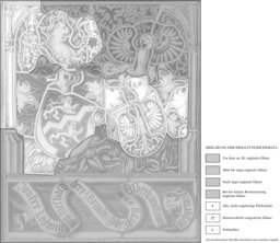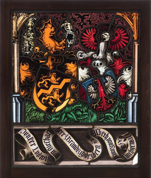 Ludwig I. von Diesbach (1418–1452), Sohn des Niklaus und der Margaretha Brüggler, wurde 1435 Burger von Bern und gelangte im gleichen Jahr in den Grossen Rat. 1440 unternahm er eine Pilgerreise nach Jerusalem, wo er zum Ritter des Heiligen Grabes geschlagen wurde. Zwischen 1447 und 1448 weilte er zudem in Santiago de Compostela (Schlup 2005, S. 387) und erhielt von Alphons, dem König von Neapel, den Ritterschlag. Es muss allerdings bezweifelt werden, dass er auch den anderen Orden angehörte, die durch Embleme auf der Scheibe vertreten sind. Ludwig I. war Herr von Diessbach (Oberdiessbach), Kiesen und Brandis sowie Besitzer von Schloss Godesberg bei Bonn, wo sein Sohn Ludwig II. (1452–1527) geboren wurde. In Bern gehörte er seit 1450 auch dem Kleinen Rat an. Zu seiner Zeit war er der reichste Bürger Berns, wo er 1444 das Diesbach-Haus an der Münstergasse 2 erbauen liess (HBLS 2/1924, S. 712; de Diesbach Belleroche 2016). Seit 1435 war er mit Anna Elisabeth von Runtz-Fischen aus Algau bei Köln verheiratet. Die Tochter des Pfandherren zu Schöneberg Heinrich von Runtz-Fischen und der Kunigunde von Erolzheim verschied 1462 in Köln. Ludwig von Diesbach starb schon 1452 an der Pest und wurde im Berner Münster beigesetzt.